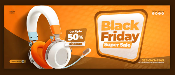 Оранжевый макет с наушниками для распродажи на черную пятницу